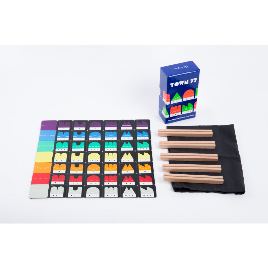 Stavíte Město 77! Všichni hráči staví město se 7 vodorovnými a 7 svislými ulicemi. Domečky v žádné řadě ani žádném sloupci ale nesmí mít stejný tvar ani barvu. Počet domečků, které ještě můžete umístit do města, se tedy postupně snižuje. Hrajete všichni proti všem. Vaším cílem je zahrát co nejvíc žetonů s domečky ze své zásoby ve stojanu tak, aby vám na konci hry ideálně nezbyl ani jediný nebo jste jich měli méně než protihráči.